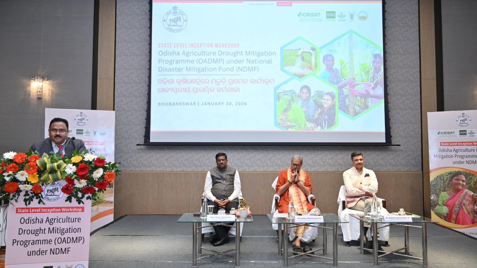 ICAR-Central Research Institute for Dryland Agriculture (CRIDA), Hydetrabad signed a MoA (Memorandum of Agreement) with The Department of Agriculture and Farmers’ Empowerment (DAFE), Government of Odisha during January, 2026 for the initiative on Odisha Agriculture Drought Mitigation Programme (OADMP) under the National Disaster Mitigation Fund (NDMF). The OADMP was launched by The Department of Agriculture and Farmers’ Empowerment (DAFE), Government of Odisha, on 30th January, 2026, during the state level inception workshop held at Bhubaneshwar, Odisha.