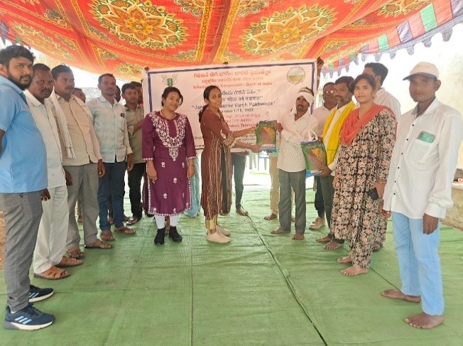 As part of Janjatiya Gaurav Varsh Pakhwada 2025-celebrations to honour tribal heritage and the 150th birth anniversary of Bhagwan Birsa Munda, awareness campaign, input distribution and Farmer-Scientist Interface Meeting were organized on the concluding day by ICAR - Central Research Institute for Dryland Agriculture (CRIDA), Hyderabad at Garkhampet, Seethagondi, Malkapur and Vaijapur Villages of Adilabad District, Telangana.