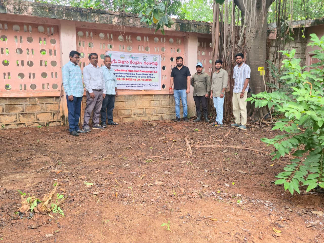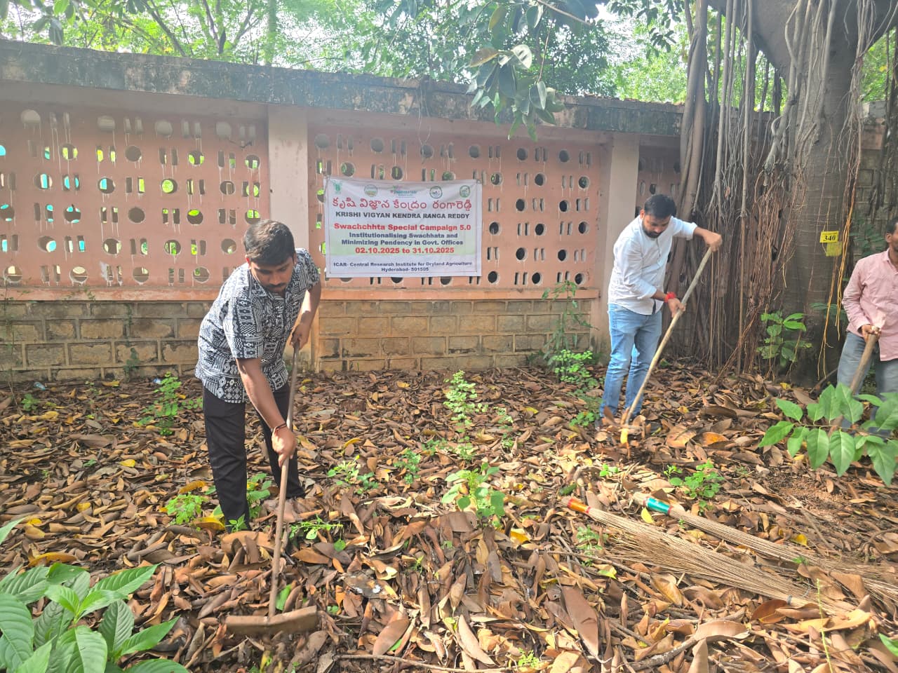 As part of the nationwide Swachhta Hi Seva campaign under Special Campaign 5.0 for Institutionalising Swachhata and Minimising Pendency in Government Offices being observed from 2nd to 31st October 2025, ICAR–CRIDA, Krishi Vigyan Kendra (KVK), Ranga Reddy organised a special cleanliness drive on 14th October 2025 at the KVK Campus, Ranga Reddy District.