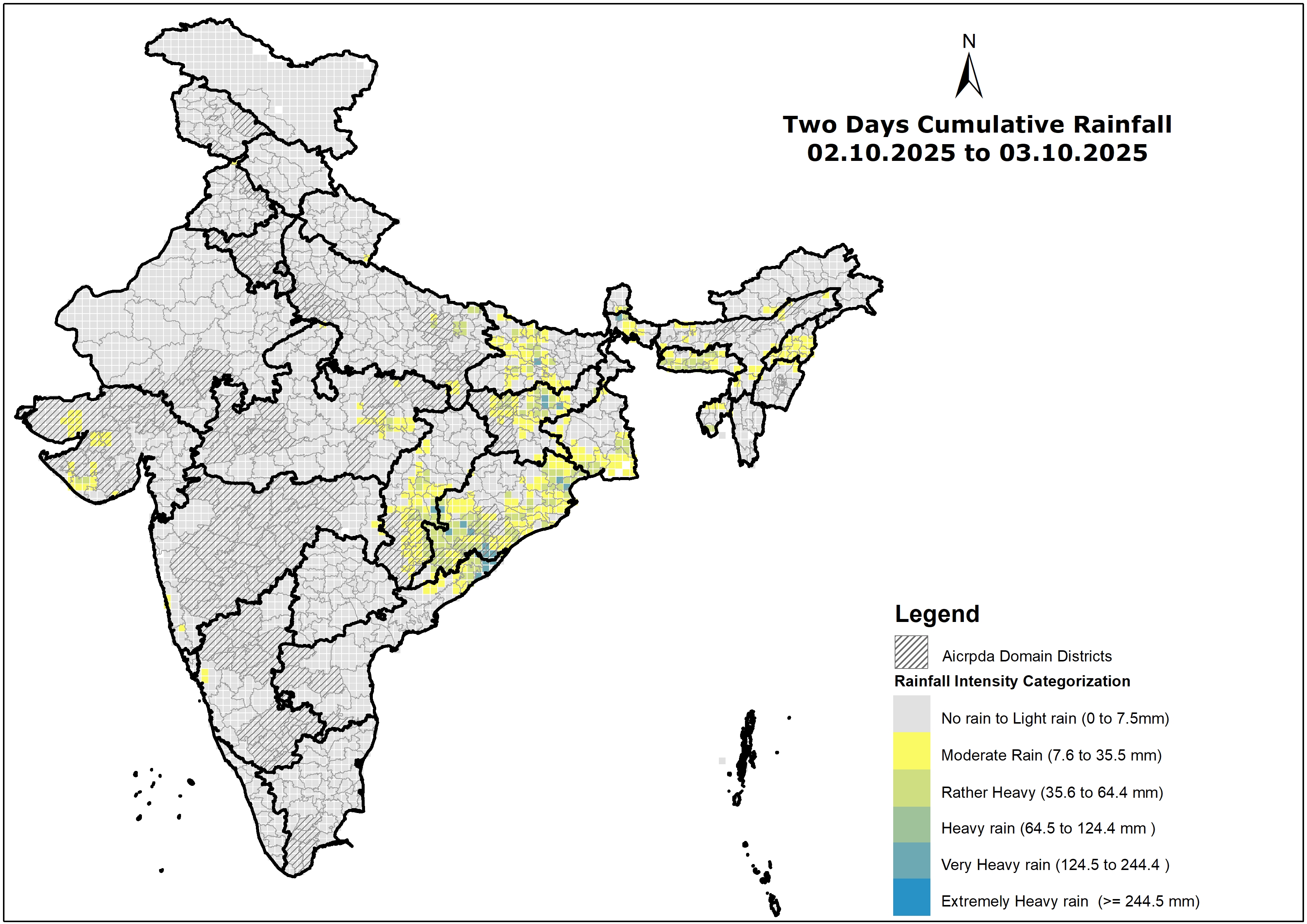Two Days Cumulative Rainfall | Three Days Cumulative Rainfall | Fifteen Days Cumulative Rainfall | Weekly Cumulative Rainfall | Dryspell(2.5 mm Threshold) | Dryspell( 10 mm Threshold) | Daily Rainfall 02-10-2025