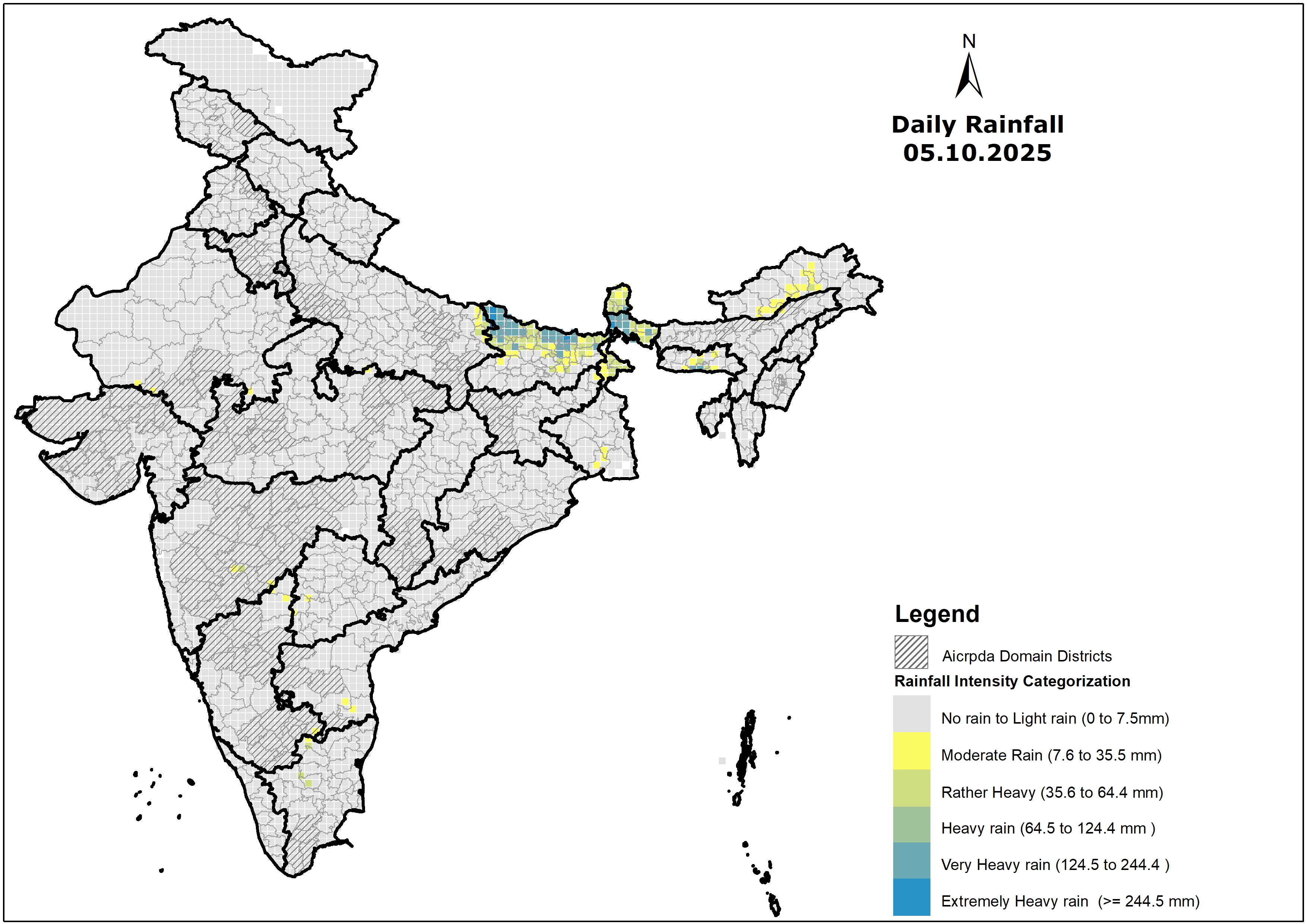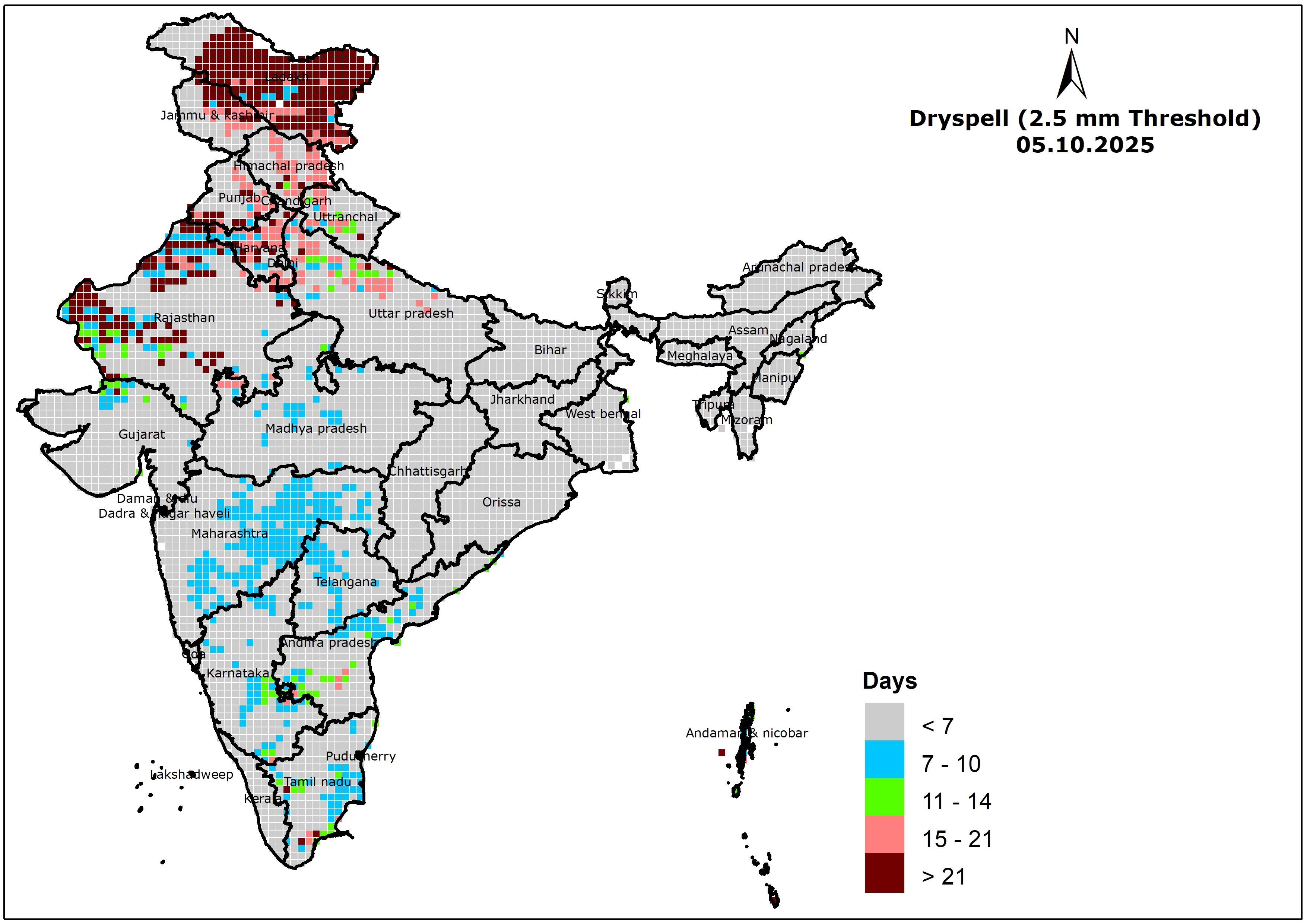 Two Days Cumulative Rainfall | Three Days Cumulative Rainfall | Fifteen Days Cumulative Rainfall | Weekly Cumulative Rainfall | Dryspell(2.5 mm Threshold) | Dryspell( 10 mm Threshold) | Daily Rainfall 05-10-2025
