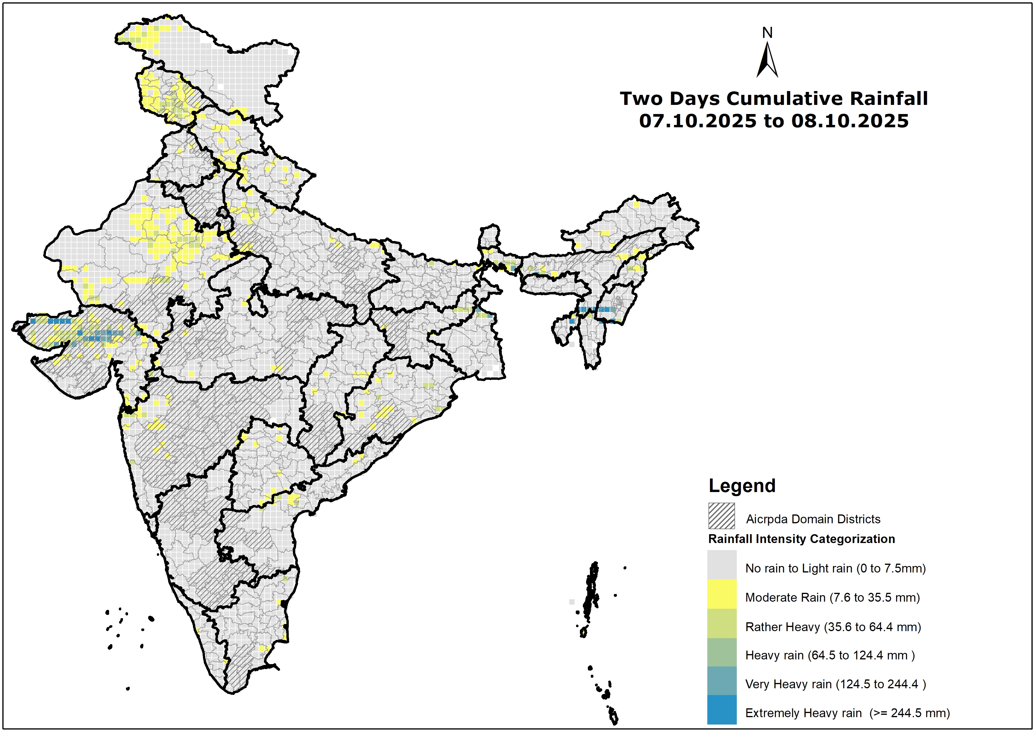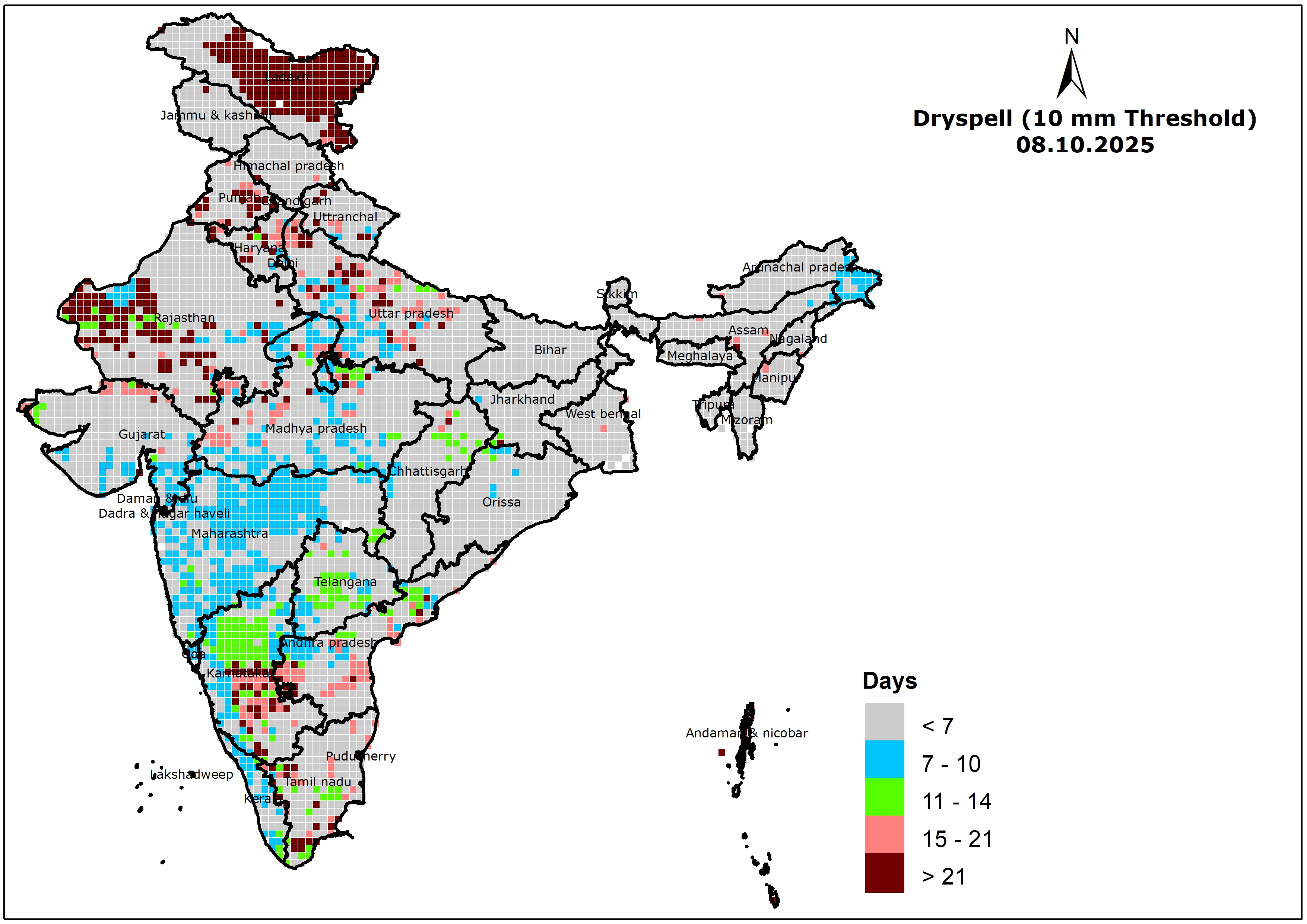Two Days Cumulative Rainfall | Three Days Cumulative Rainfall | Fifteen Days Cumulative Rainfall | Weekly Cumulative Rainfall | Dryspell(2.5 mm Threshold) | Dryspell( 10 mm Threshold) | Daily Rainfall 08-10-2025