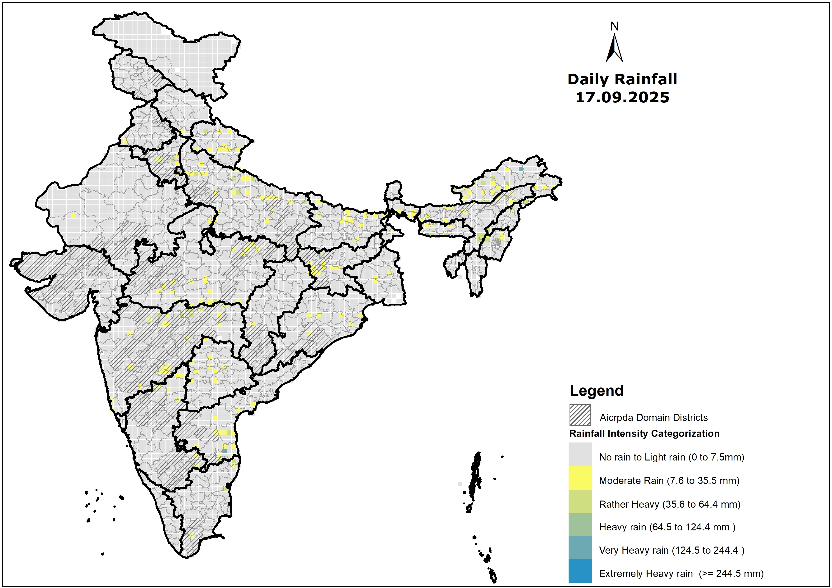 Two Days Cumulative Rainfall | Three Days Cumulative Rainfall | Fifteen Days Cumulative Rainfall | Weekly Cumulative Rainfall | Dryspell(2.5 mm Threshold) | Dryspell( 10 mm Threshold) | Daily Rainfall 17-09-2025
