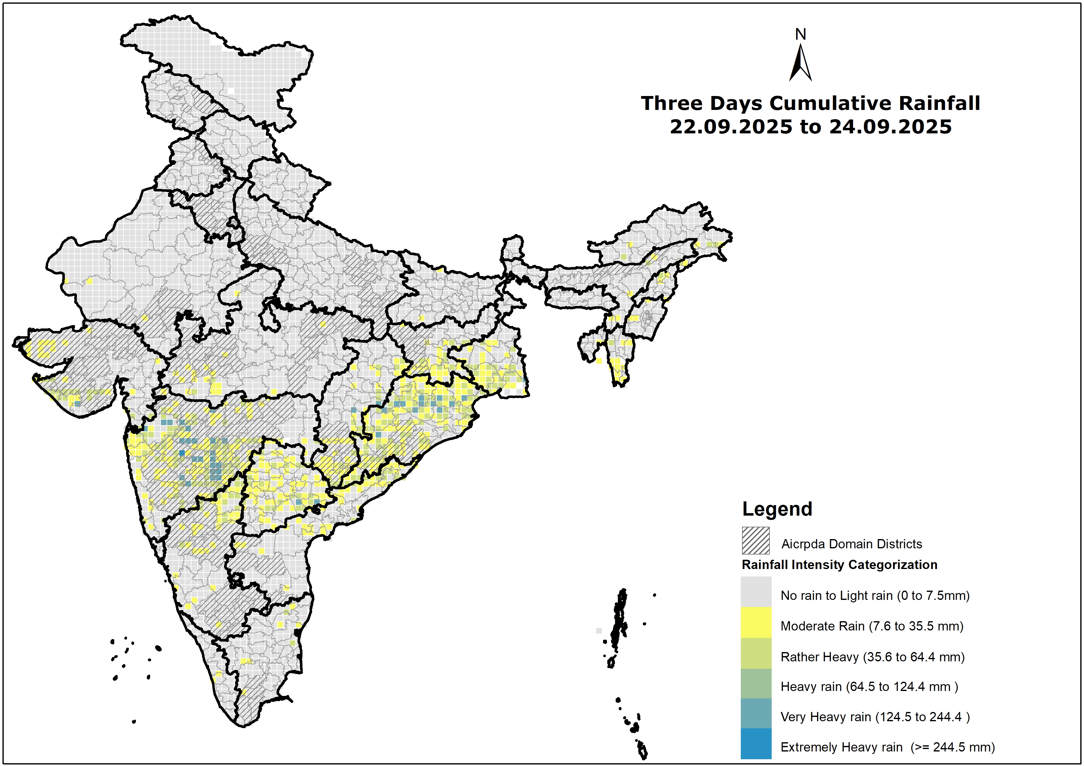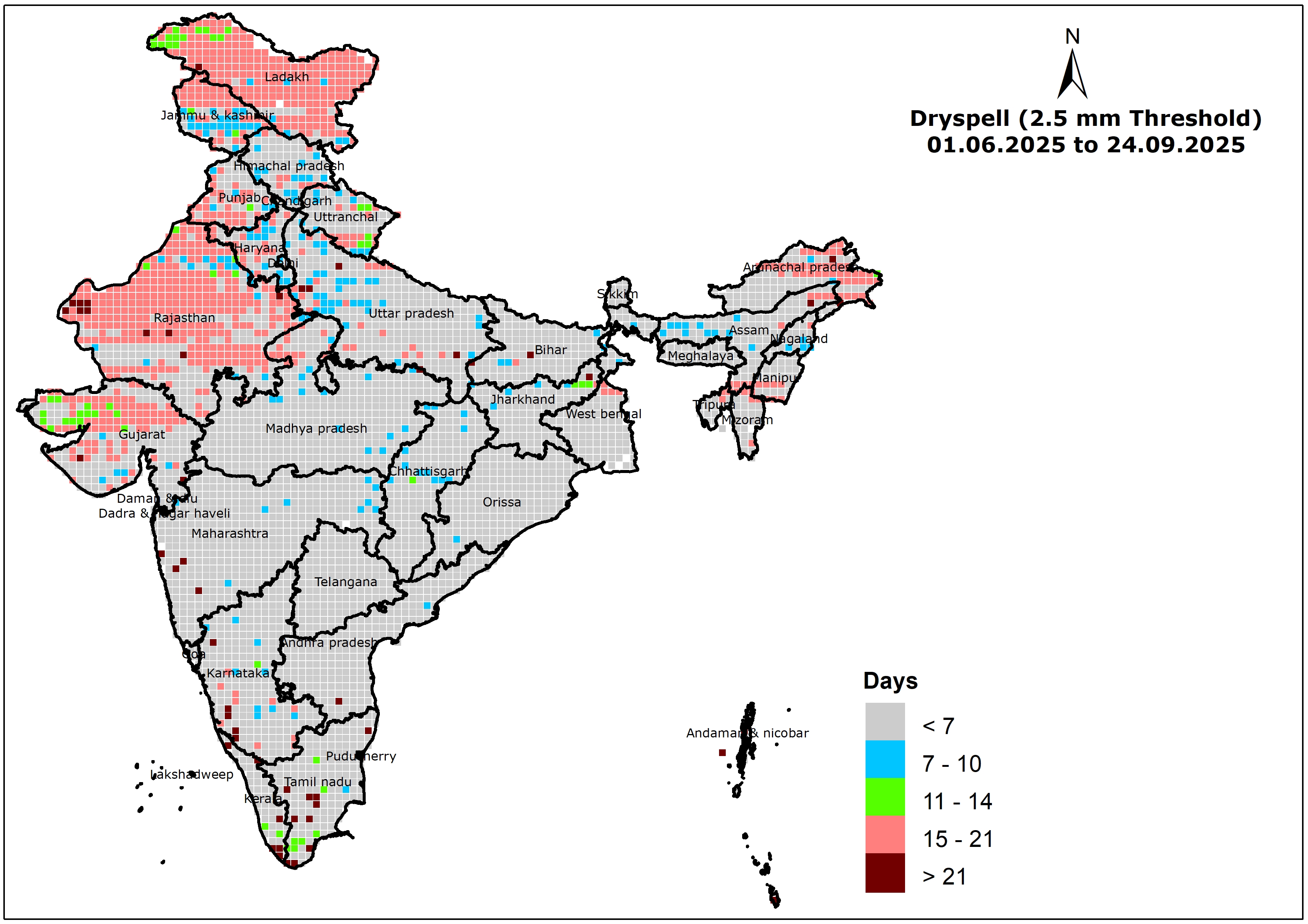 Two Days Cumulative Rainfall | Three Days Cumulative Rainfall | Fifteen Days Cumulative Rainfall | Weekly Cumulative Rainfall | Dryspell(2.5 mm Threshold) | Dryspell( 10 mm Threshold) | Daily Rainfall 24-09-2025